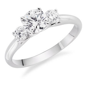 The ultimate celebration of a lifetime of love, this stunning 18ct white gold Maple Leaf Diamonds Three Stone Diamond Ring features 1 carat of breathtaking diamonds. At A Glance Presented on an 18ct white gold band, a unique mix of gold from the Royal Canadian Mint and palladium for a bright white finish Three stone design Central Canadian round brilliant cut diamond Diamond colour – G Diamond Clarity – SI1 Diamond carat weight – 1.00ct Please note there could be a 5% variance on the diamond carat weight, as every diamond is unique