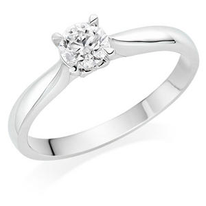 Simply beautiful, this 18ct White Gold Diamond Solitaire Ring defines timeless romance, and makes the perfect ring for a romantic proposal. At A Glance Round brilliant diamond in the centre Polished 18ct white gold band Modern four claw setting Diamond cut – round brilliant Diamond colour – G Diamond clarity – Si1 Diamond carat weight – 0.30ct Please note there could be a 5% variance on the diamond carat weight, as every diamond is unique