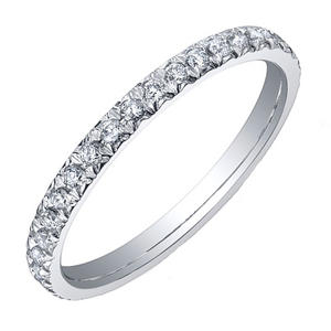 This Maple Leaf Diamonds 18ct White Gold Diamond Wedding Ring is a beautiful symbol of the start of your new lives together. Shaped to fit next to your engagement ring perfectly, it dazzles with a row of brilliant cut diamonds. At A Glance Presented on an 18ct white gold band, a unique mix of gold from the Royal Canadian Mint and palladium for a bright white finish Half eternity style Round brilliant cut diamonds Diamond colour – G Diamond Clarity – SI1 Diamond carat weight – 0.09ct Please note there could be a 5% variance on the diamond carat weight, as every diamond is unique