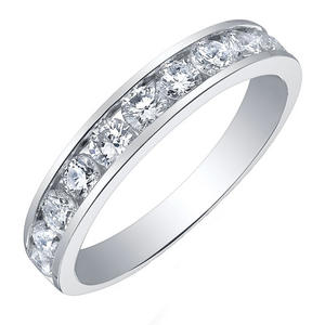 Simple and elegant, this stunning 9ct White Gold Diamond Half Eternity Ring showcases an understated sense of glamour that is very on-trend. At A Glance Presented on a 9ct white gold band Brilliant cut diamonds Channel setting Diamond cut – round brilliant Diamond colour – G Diamond clarity – I1 Total diamond carat weight – 0.15ct Please note there could be a 5% variance on the diamond carat weight, as every diamond is unique