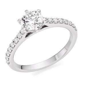 Sweep them off their feet with this absolutely breathtaking Once Platinum Diamond Solitaire Ring, from our exclusive collection. They’re sure to say ‘yes’ with this incredible ring. At A Glance Part of our exclusive Once collection Crafted in a polished platinum band Breathtaking solitaire diamond More diamonds embellish the shoulders which lead up to the centre stone Diamond cut – round brilliant Diamond colour – H Diamond clarity – Si1 Total diamond carat weight – 1.27ct Please note there could be a 5% variance on the diamond carat weight, as every diamond is unique