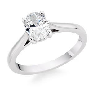 Cherish your precious moments with this Once Platinum Oval Cut Diamond Solitaire Ring, signifying your eternal love for one another. With a timeless design they will treasure forever, this is the perfect way to celebrate the rest of your life together. At A Glance Crafted in a polished platinum band Featuring diamonds Diamond cut – oval Diamond carat weight – 1.22 Diamond clarity – VS2 Diamond colour – G Please note there may be a 5% variance on the diamond carat weight, as every diamond is unique
