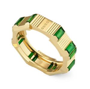From a brand that knows no limits, this Gucci Link to Love 18ct Gold Green Tourmaline Ring blurs the lines between masculine and feminine. For a ring designed to be worn by all just the way you want, stacked up or on its own, for a look as unique as you. At A Glance Crafted in 18ct gold Green tourmaline crystals Stackable and layered features Gucci engraving Link to Love collection