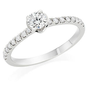 Get ready to begin you next romantic chapter with this dazzling Hearts on Fire Juliette Platinum Diamond Solitaire Ring, glittering intensely from every angle. At A Glance Hearts on Fire diamonds are cut and polished to 100 x magnification, which is ten times the industry standard Crafted in a polished platinum band Central round brilliant diamond Four claw setting Diamond set shoulders Diamond cut – round brilliant Diamond colour – H Diamond clarity – SI1 Diamond carat weight – 0.51ct Please note there could be a 5% variance on the diamond carat weight, as every diamond is unique