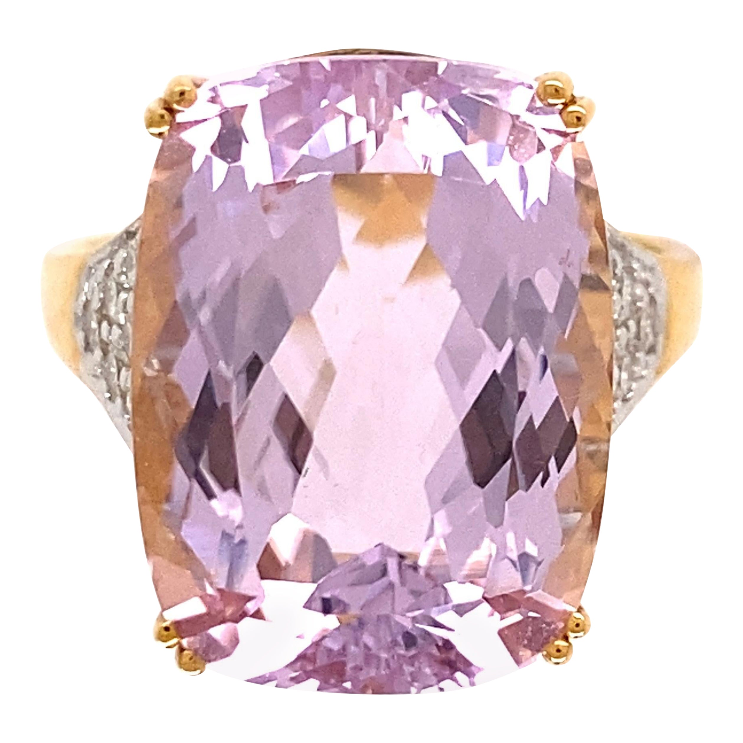 10.09 Carat Cushion Kunzite Diamond Solitaire Gold Cocktail Ring Estate Jewellery