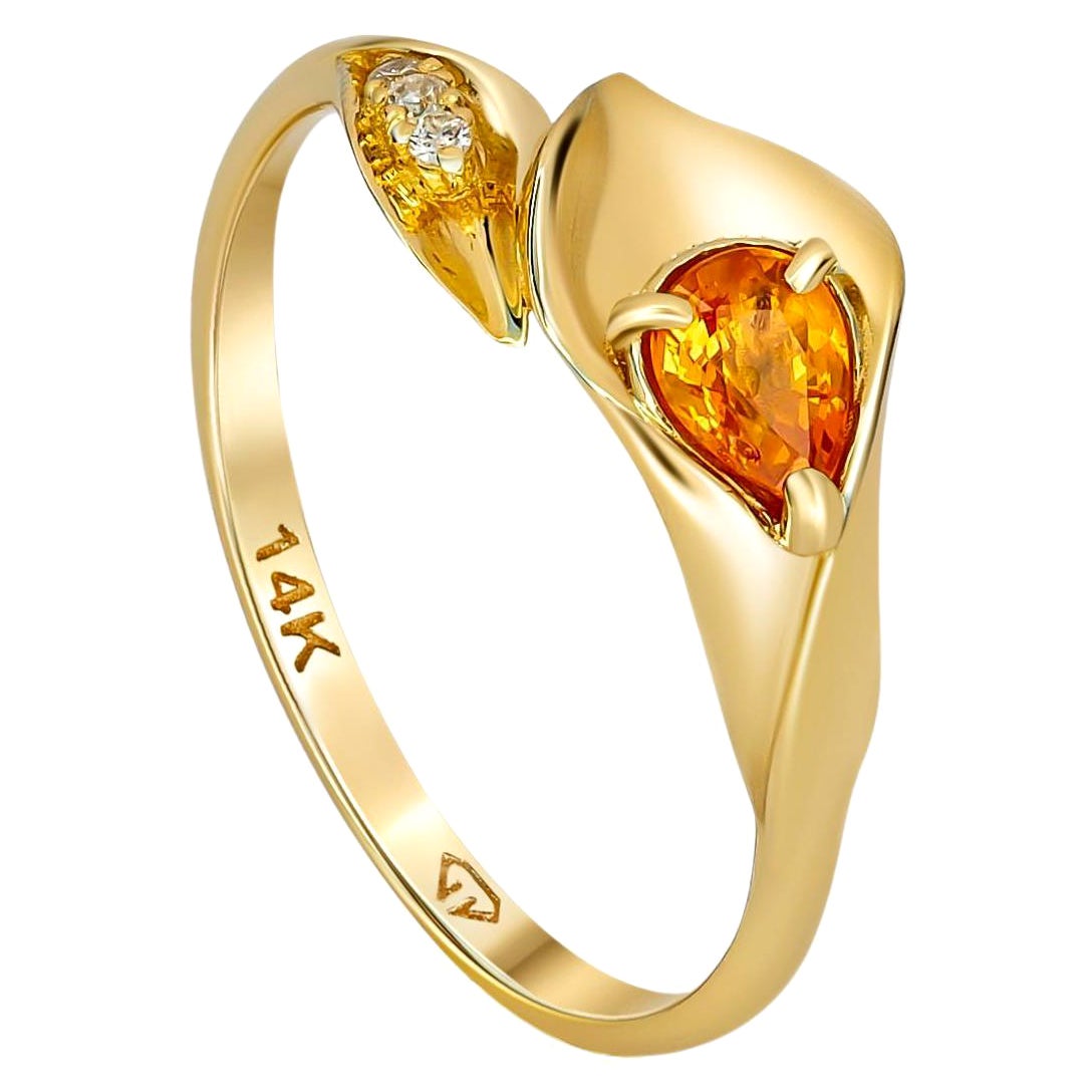 14 kt gold ring with sapphire and diamonds. Lily calla gold ring.