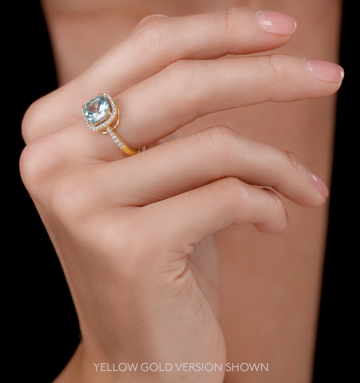 Give your loved one a beautiful gift with this stunning ring. The bright blue topaz and sustainable lab grown diamonds create enchanting sparkle on your hand. The pristine white gold band lends this elegant piece its final, irresistible touch of luxury.