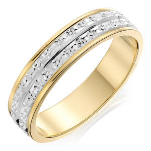 9ct Bi-colour Gold Sparkle Cut Ladies Wedding Ring