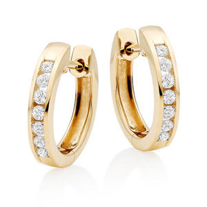 Add luxurious sparkle to your look with these beautiful 9ct gold diamond hoop earrings. Designed in 9ct gold, these earrings feature polished hoops that are adorned with a dazzling diamond embellishment. Dress up your evening looks with these stunning diamond hoop earrings. Diamond information: Cut – round brilliant, Colour – I, Clarity – i1, Carat weight – 0.25ct.Please note there could be a 5% variance on the diamond carat weight, as every diamond is unique.
