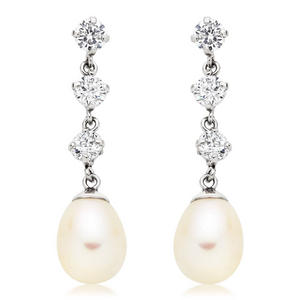 9ct White Gold Cubic Zirconia Freshwater Cultured Pearl Drop Earrings