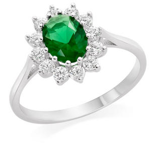 9ct White Gold Green Cubic Zirconia Halo Ring