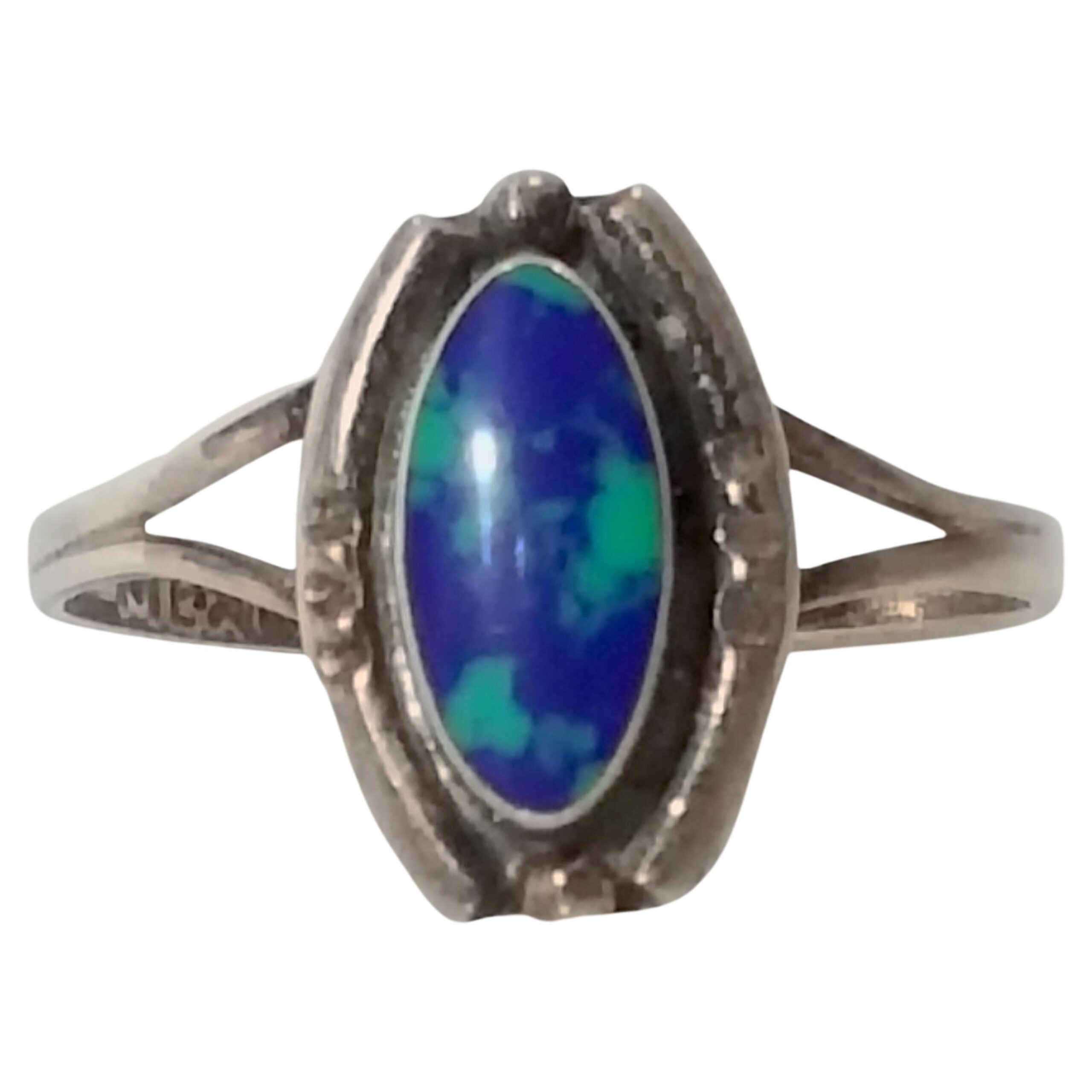Antique ArtNouveau Blue AzurMalachite MilapillasMine Cabochon MexicanSilver Ring