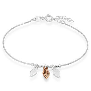 Add a chic and bohemian style to your look with this must-have silver and rose gold plated feather bracelet. Designed in silver, this bracelet features a delicate chain, enhanced by two silver feathers and a rose gold plated silver charm in the centre. Try layering yours with more pretty bracelets for ultimate style.