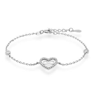 Reflecting our infinite passion for jewellery, this Silver Cubic Zirconia Infinity Heart Bracelet has been created to celebrate our 100th birthday. At A Glance From our exclusive Infinite Style collection, created for our 100th birthday Designed in silver Delicate chain with cubic zirconia embellishments Cubic zirconia-embellished heart with a polished infinity symbol inside