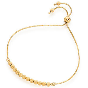 Enhance your look day and night with this simply beautiful 9ct gold ball slider bracelet. Designed in 9ct gold, this bracelet features a delicate chain that’s enhanced by sparkle cut balls for a modern look, finished with an adjustable slider fastener. Layer your look and wear yours with more stylish bracelets.