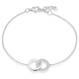Add a glamorous touch of sparkle to your look with this must-have silver cubic zirconia double circle bracelet. Simply stunning, this bracelet is designed in sterling silver and features a delicate chain that’s enhanced by the two interlocking circles with a polished finish and dazzling cubic zirconia embellishment. Layer yours with more pretty bracelets to make a fashionable statement of style. At A Glance Crafted in sterling silver Cubic zirconia design Fastened with a lobster clasp