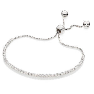A classic jewellery style with a modern finish, this silver cubic zirconia tennis slider bracelet will never go out of style. Designed in silver, this bracelet features a delicate chain with an adjustable slider fastener, finished with a dazzling cubic zirconia embellishment. Sparkle both day and night with this gorgeous tennis bracelet.