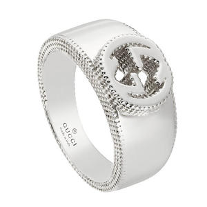 An instant icon, this Gucci Interlocking G silver ring is a luxurious finishing touch for every occasion. At A Glance Crafted in sterling silver Smooth polished band Interlocking G motif with mill grain edge