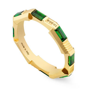 From a brand that knows no limits, this Gucci Link to Love 18ct Gold Green Tourmaline Ring blurs the lines between masculine and feminine. For a ring designed to be worn by all just the way you want, stacked up or on its own, for a look as unique as you. At A Glance Crafted in 18ct gold Green tourmaline crystals Stackable and layered features Gucci engraving Link to Love collection