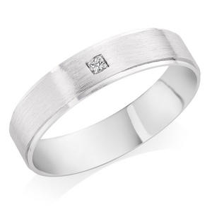 With a brushed effect and sparkling diamond, this Platinum Diamond Men’s Wedding Ring creates the perfect look for your most special moment and beyond. At A Glance Crafted in platinum with a brushed effect Court style Polished platinum edges Embellished with a single carefully hand selected princess cut diamond Diamond colour – H Diamond clarity – SI2 Diamond carat weight – 0.04ct Please note there could be a 5% variance on the diamond carat weight, as every diamond is unique