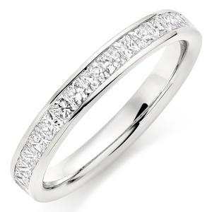 Prove your love is eternal with this dazzling Platinum Diamond Princess Cut Half Eternity Ring. Each diamond has been chosen for its expert cut, creating the most magnificent fire and sparkle for a design that defines luxury and romance. At A Glance Designed with the rarest metal of all – platinum Polished finish Embellished with princess cut diamonds to create the half eternity style Diamond cut – princess cut Diamond colour – G Diamond clarity – SI1 Total diamond carat weight – 0.75ct Please note there could be a 5% variance on the diamond carat weight, as every diamond is unique