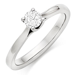 Simply beautiful, this breathtaking Platinum Diamond Solitaire Ring symbolises the most special moment of your life together so far. At A Glance Beautiful brilliant cut diamond Elegant four claw setting Band of polished platinum Sides of the setting are embellished with four glittering diamonds Diamond cut – round brilliant Diamond colour – G Diamond clarity – SI1 Diamond carat weight – 0.32ct Please note there could be a 5% variance on the diamond carat weight, as every diamond is unique
