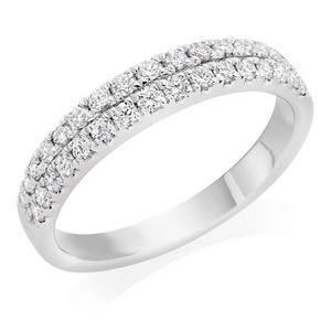 Showcasing two rows of diamonds for extra sparkle, this Platinum Diamond Two Row Wedding Ring will make a statement worn solo, or side by side with your beautiful engagement ring. At A Glance Designed in platinum Embellished with two rows of carefully hand selected diamonds Diamond colour – G Diamond clarity Si1 Diamond carat weight – 0.50ct