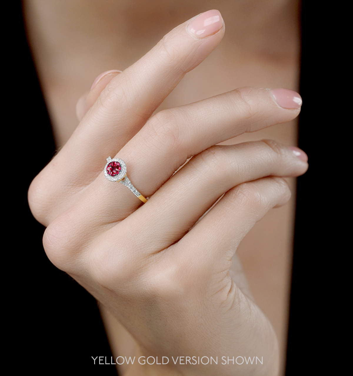 RUBY AND LAB DIAMOND HALO CIRCLE RING 9K WHITE GOLD – ASTERIA