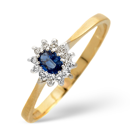 SAPPHIRE 4 X 3 MM AND DIAMOND 9K GOLD RING