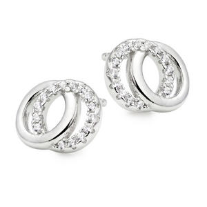 Two circles beautifully layered together and embellished with dazzling cubic zirconia crystals, these Silver Cubic Zirconia Double Circle Stud Earrings are sure to be admired by all. At A Glance Crafted in sterling silver Double circle design Featuring cubic zirconia crystals Fastens with a butterfly clasp