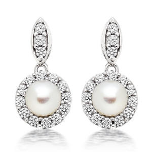 A timeless classic that is the epitome of feminine style and sophistication, these stunning Silver Cubic Zirconia Freshwater Cultured Pearl Drop Earrings are the perfect accessory for a special occasion. At A Glance Crafted in sterling silver Freshwater cultured pearl Glittering halo of cubic zirconia stones