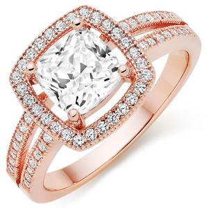 This stunning Silver Rose Gold Plated Cocktail Ring features a dazzling halo of cubic zirconia surrounding a centre stone, with the addition of more glittering stones falling down the ring’s shoulders. A real head-turner. At A Glance Designed in rose gold plated sterling silver Features sparkling cubic zirconia