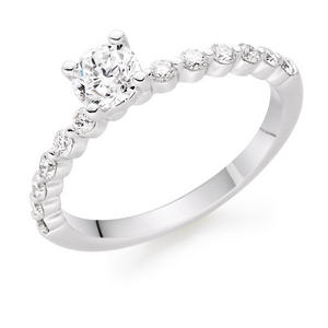 Thoughtfully crafted to capture the light perfectly, this Platinum Diamond Solitaire Ring celebrates your special moments with the one you love most. Designed in polished platinum adorning magnificent round brilliant diamonds that radiate together in a unique shared setting for an unparalleled sparkle you can treasure forever. At A Glance Crafted in a polished platinum band Diamond set shoulders Diamond cut – round brilliant Diamond colour – G Diamond clarity – SI1 Diamond carat weight – 0.75 Please note there may be a 5% variance with the diamond carat weight, as every diamond is unique