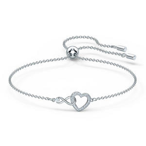 Showcasing an expression of eternal love, this Swarovski Infinity Heart Silver Tone Bracelet is the perfect piece for that special someone. At A Glance Silver tone Infinity and heart motif Crystal embellishment Delicate chain Adjustable slider design
